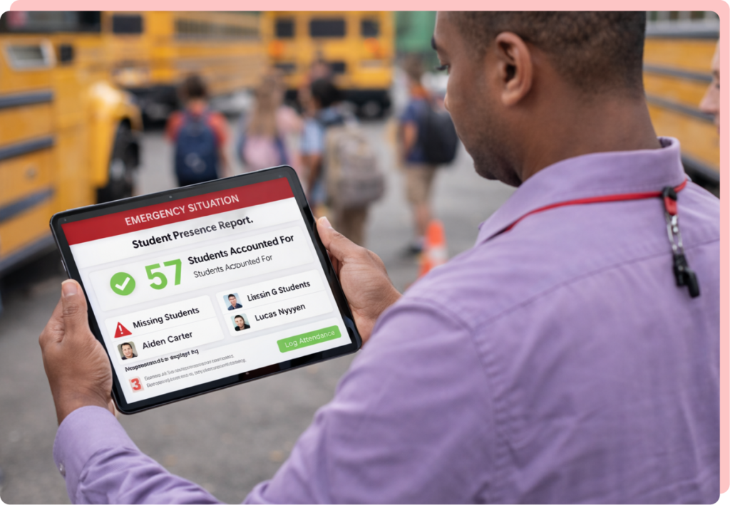 Access real-time student presence reports during critical situations. Enable quick digital headcounts and faster evacuation coordination to improve response time.